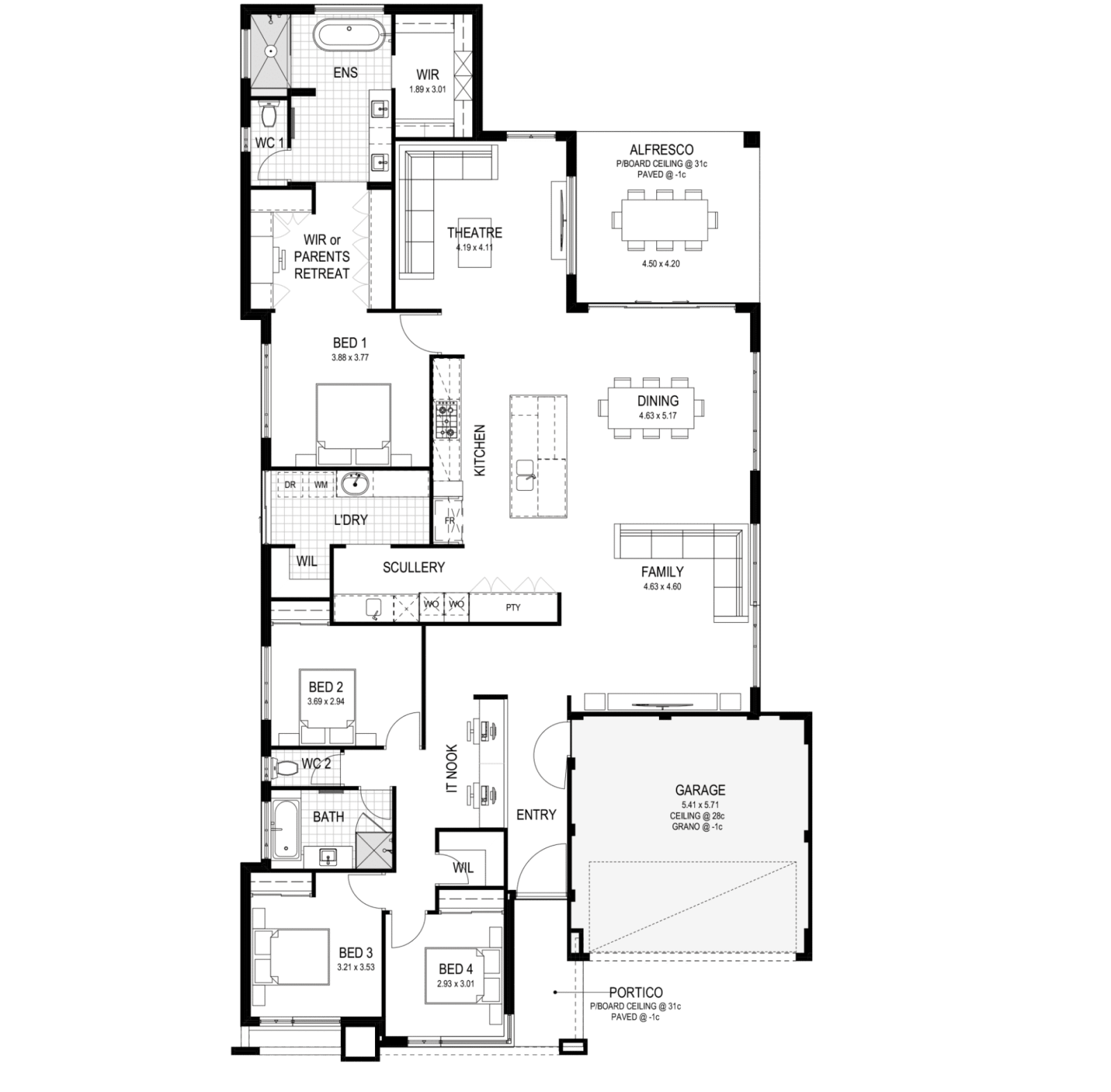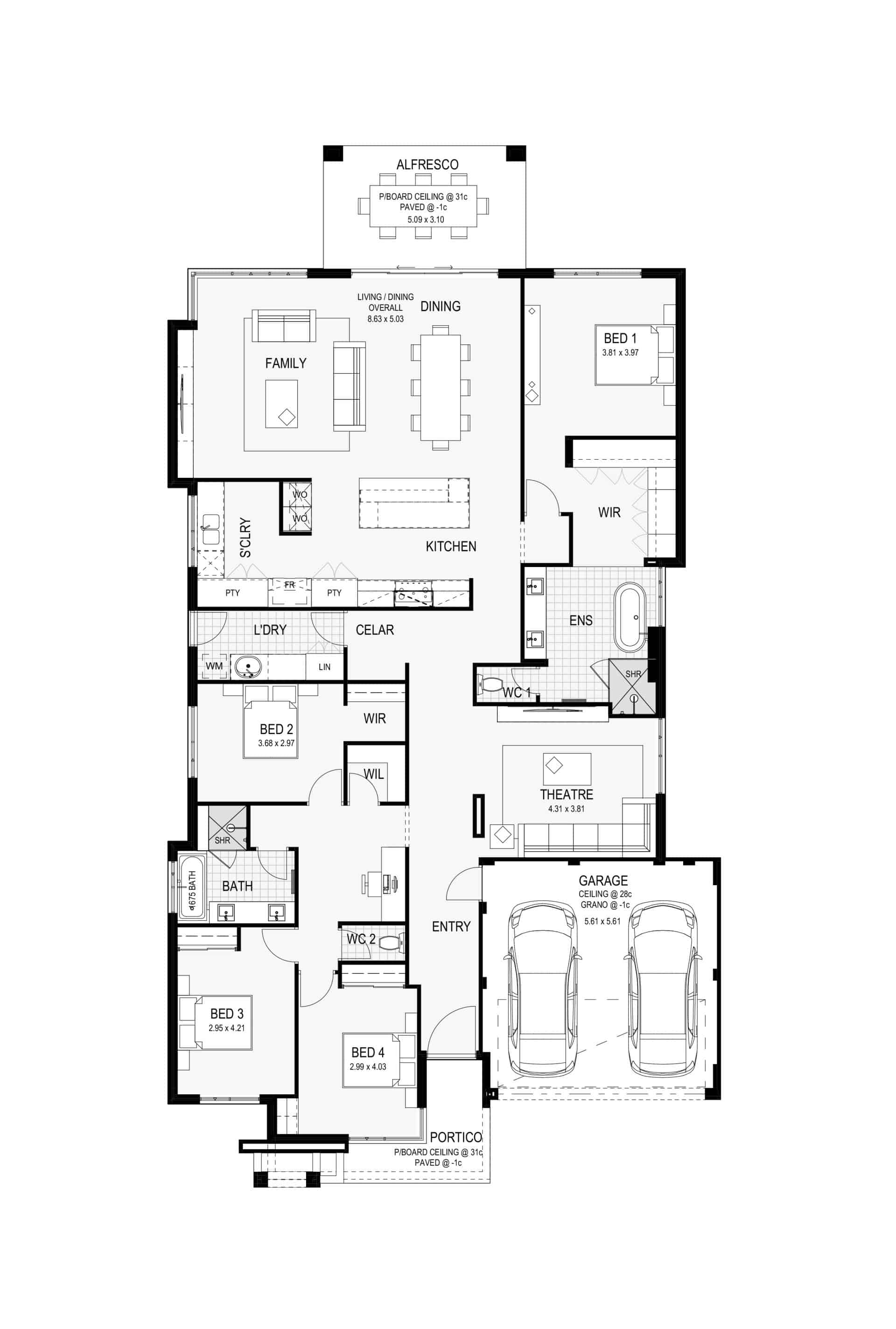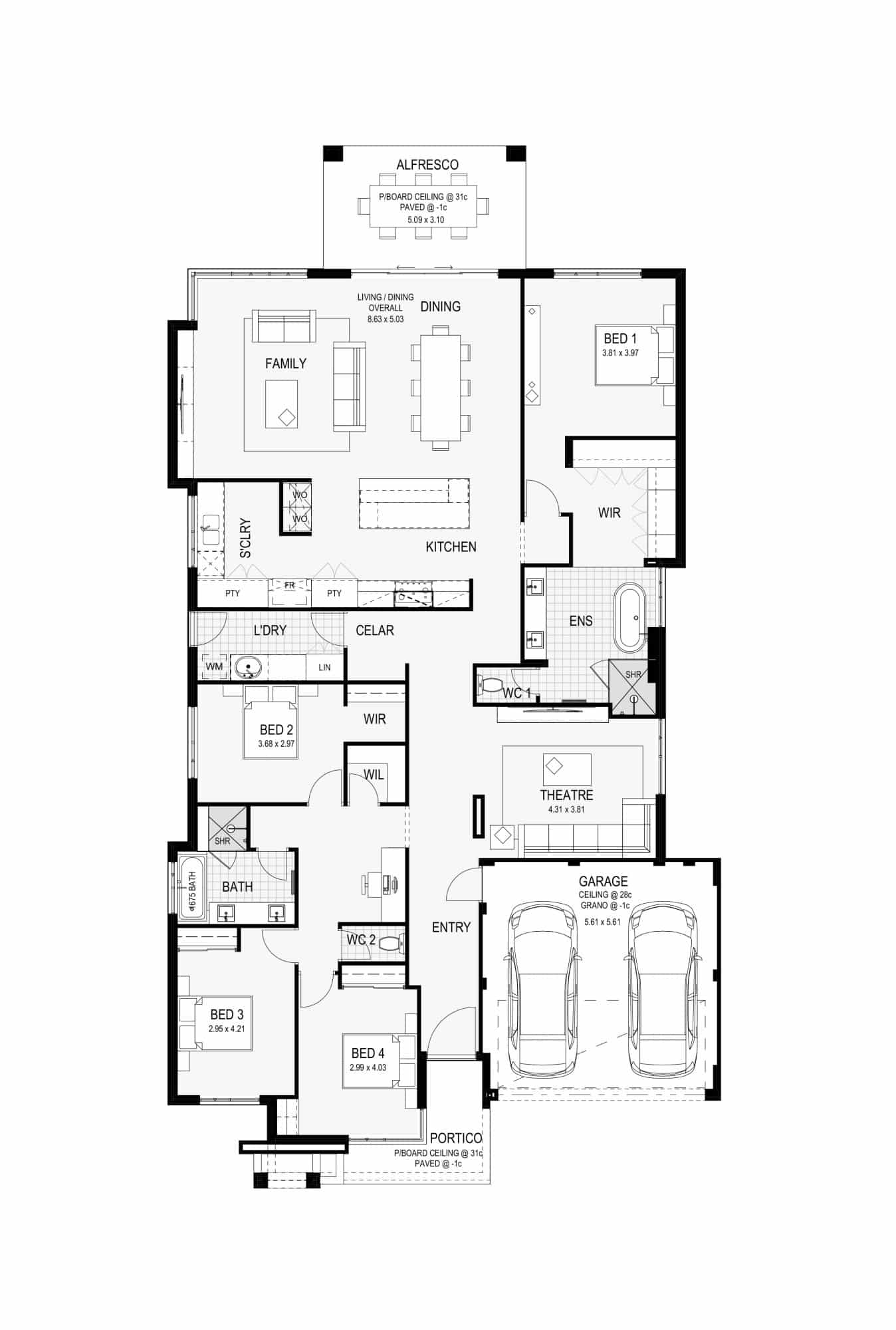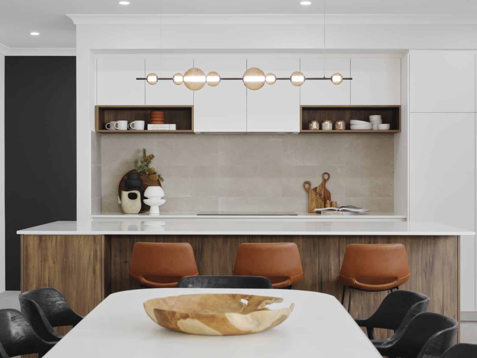 The Simmons bespoke WA made kitchen will impress with extensive cabinetry and high, recessed feature ceilings.